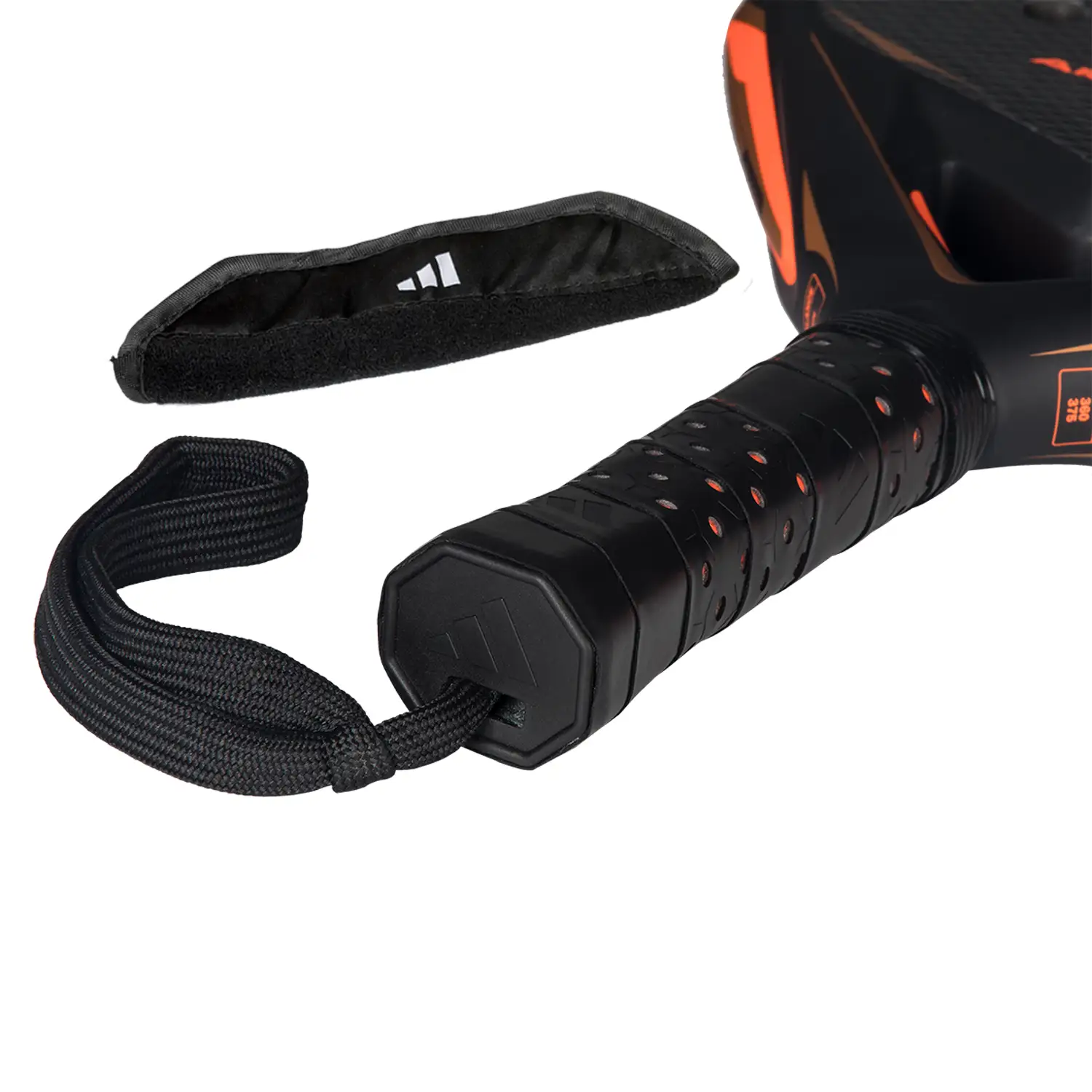 ADIDAS Padel Racket Arrow HIT CTRL 2026 is designed for high-level players seeking precision, power, and control in every shot. Equipped with the Intelligent Balance System (IBS), the racket allows you to adjust its balance effortlessly using lateral rails and movable weights with an Allen key, ensuring an optimal fit for your playing style. The Muscle Power System integrates carbon tendons throughout the frame, enhancing torsional resistance, while the Power Groove rail reinforces the structure to maximize shot power. Its Extra Power Grip increases inertia, providing stronger, more controlled strikes, and the Soft Performance low-density EVA rubber ensures excellent ball output and comfort during extended play.