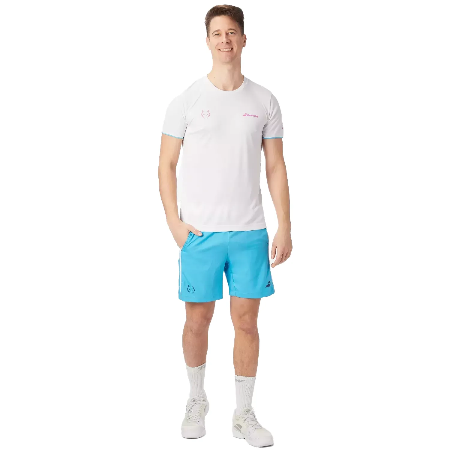 BABOLAT Short Lebron Men blue designed for padel players who demand performance and style. Featuring Juan Lebron’s signature logo on the leg, these shorts deliver a perfect blend of functionality and flair. Made with Fiber Dry-polyester, the fabric is exceptionally lightweight, soft to the touch, and resistant to wear — keeping you comfortable during the most intense rallies.