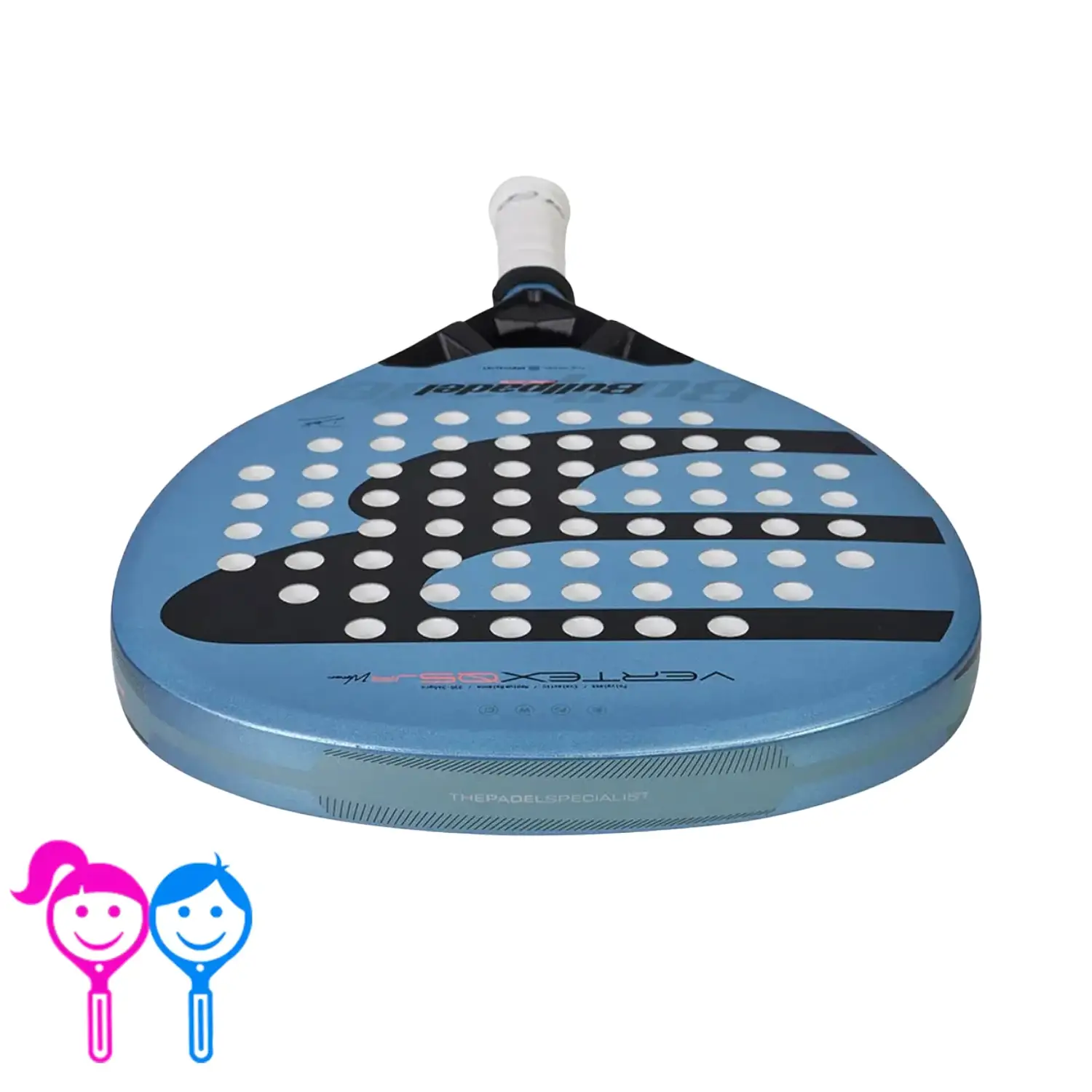 BULLPADEL Racket Vertex Girl Junior 2026 is expertly engineered to help young female players develop their skills with confidence and control. Designed with a lightweight structure ranging between 300–330 grams, this junior padel racket ensures easy handling, faster reaction times, and reduced arm fatigue during training and matches. Its round shape enhances precision and sweet spot consistency, making it ideal for junior players who prioritize control and technical progression on the court. The vibrant blue design with eye-catching graphics adds a dynamic and inspiring look tailored specifically for young champions.