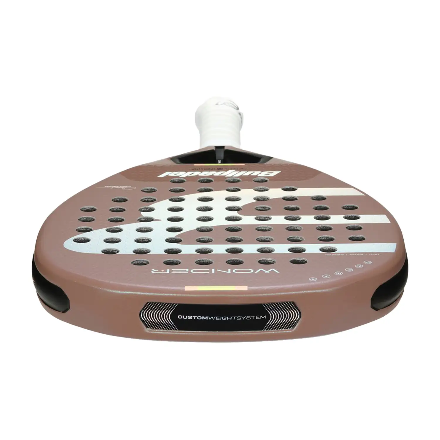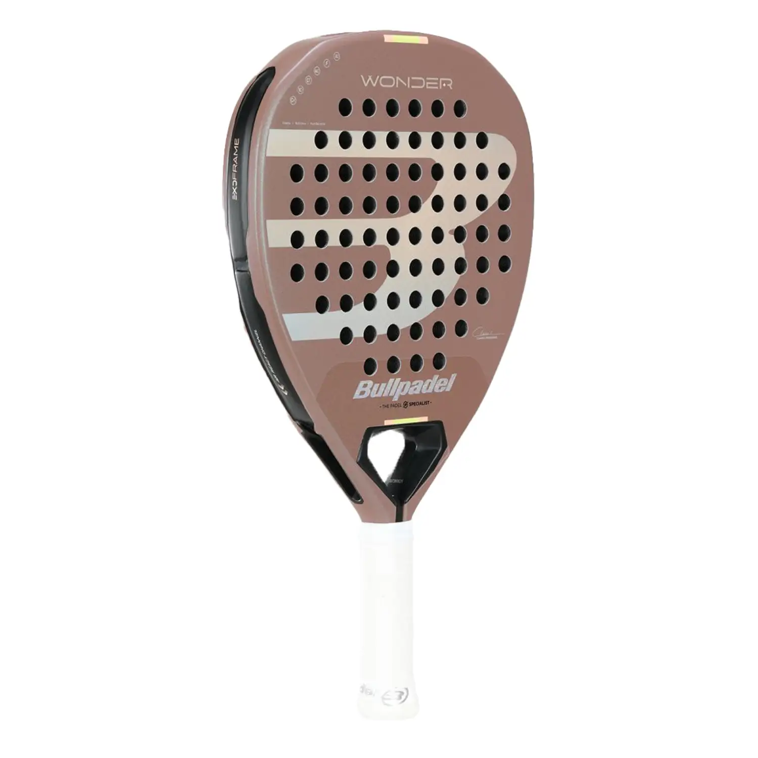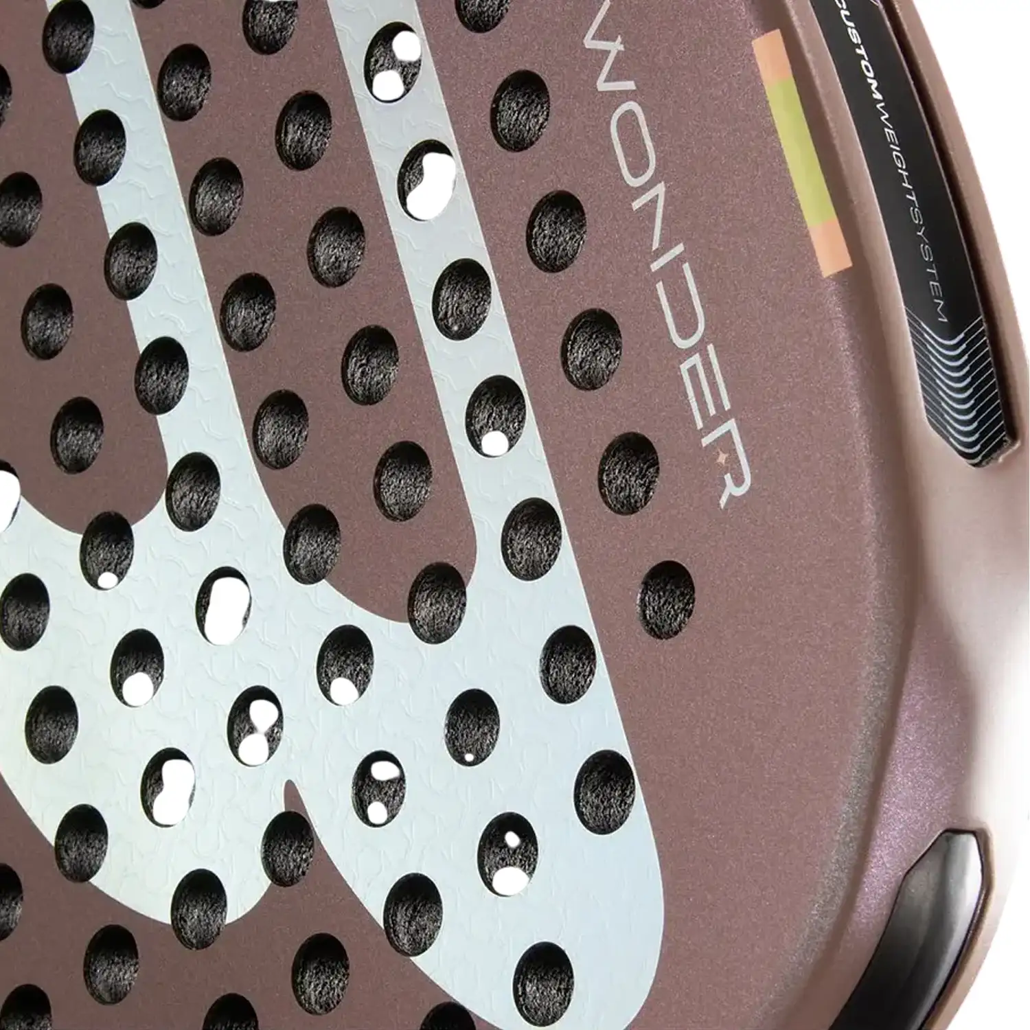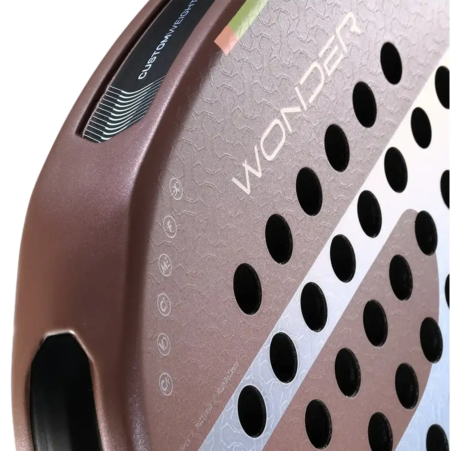 BULLPADEL Racket WONDER 2026 delivers a refined blend of power and precision crafted for advanced players who demand versatility in every rally. Its hybrid shape expands the sweet spot while maintaining a responsive strike zone, allowing players to switch effortlessly between aggressive smashes and tight defensive play. The Multieva core—engineered with layered EVA densities—enhances ball output by adapting its response to each shot, providing softer impact absorption on slow balls and explosive rebound on faster ones. Complementing this core is the Fibrix face, a highly durable hybrid fiber that offers elevated elasticity, resulting in improved control, faster recovery, and consistent responsiveness across the entire hitting surface.