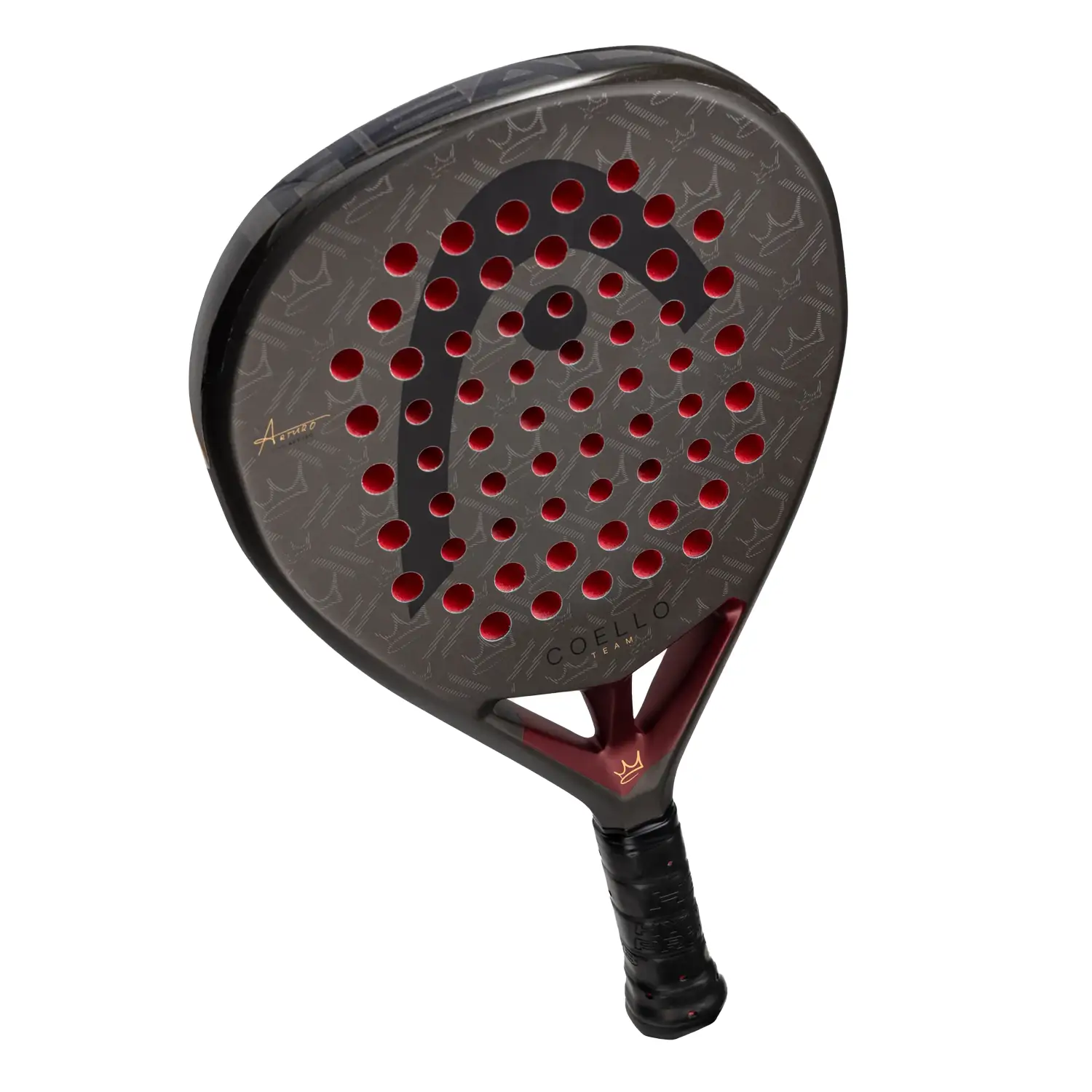 Built with Auxetic 2.0 technology, the Coello Team 2026 delivers exceptional touch, improved feel, and an extra boost of power at impact. The upgraded Power Foam core enhances ball rebound and responsiveness, while the carbon fiber hitting surface and rigid carbon frame maximize energy transfer for fast, powerful shots. Additional technologies such as Extreme Spin improve ball grip and spin potential, and the Power Stabilizer ensures a fast swing with added stability. Finished with an exclusive design featuring Coello’s crown logo and signature, this racket is a premium choice for adult players seeking a perfect balance of power and control in competitive padel.