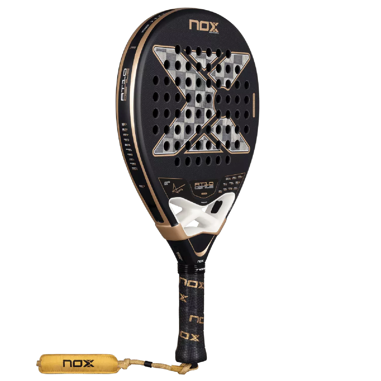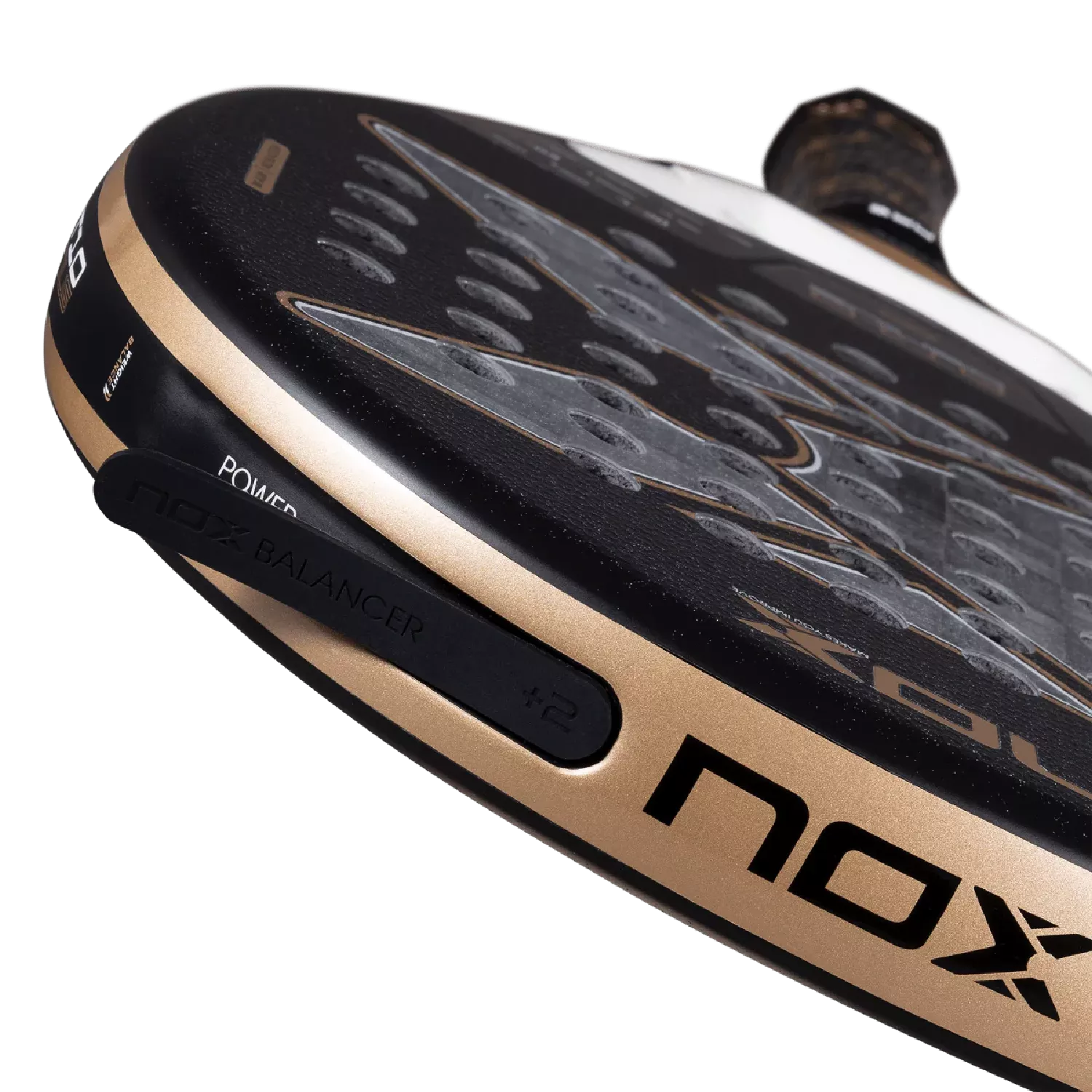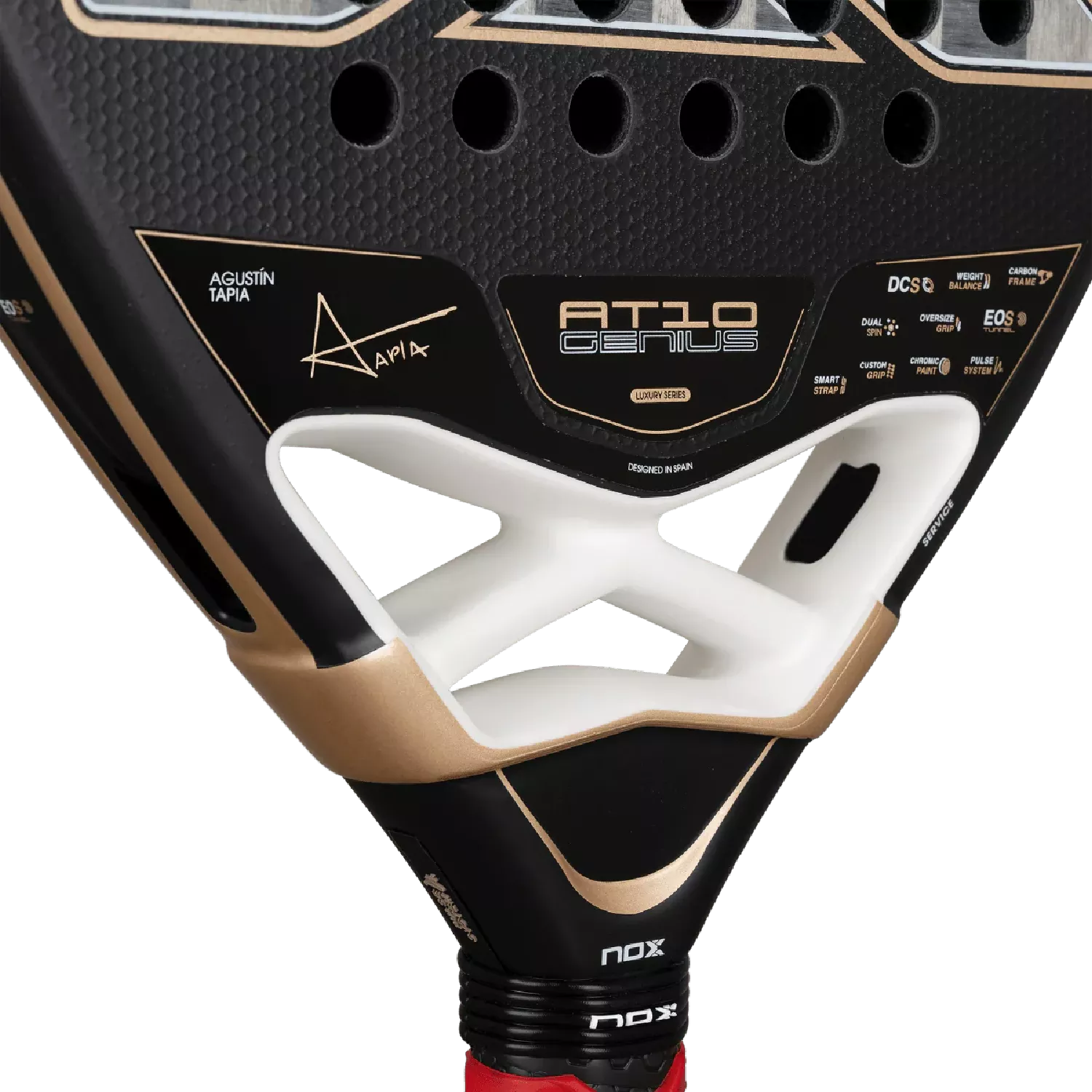NOX Padel Racket AT10 Luxury Genius 18K Alum 2026 (By Agustin Tapia) sets a new standard in padel racket innovation, evolving the model that propelled Agustín Tapia to the top of the world rankings with a redesigned mould. This year, the racket used by the “Mozart of Catamarca” incorporates the Weight Balance counterweight system, enabling players to customise the racket’s balance according to their playing style for a fully personalised experience.