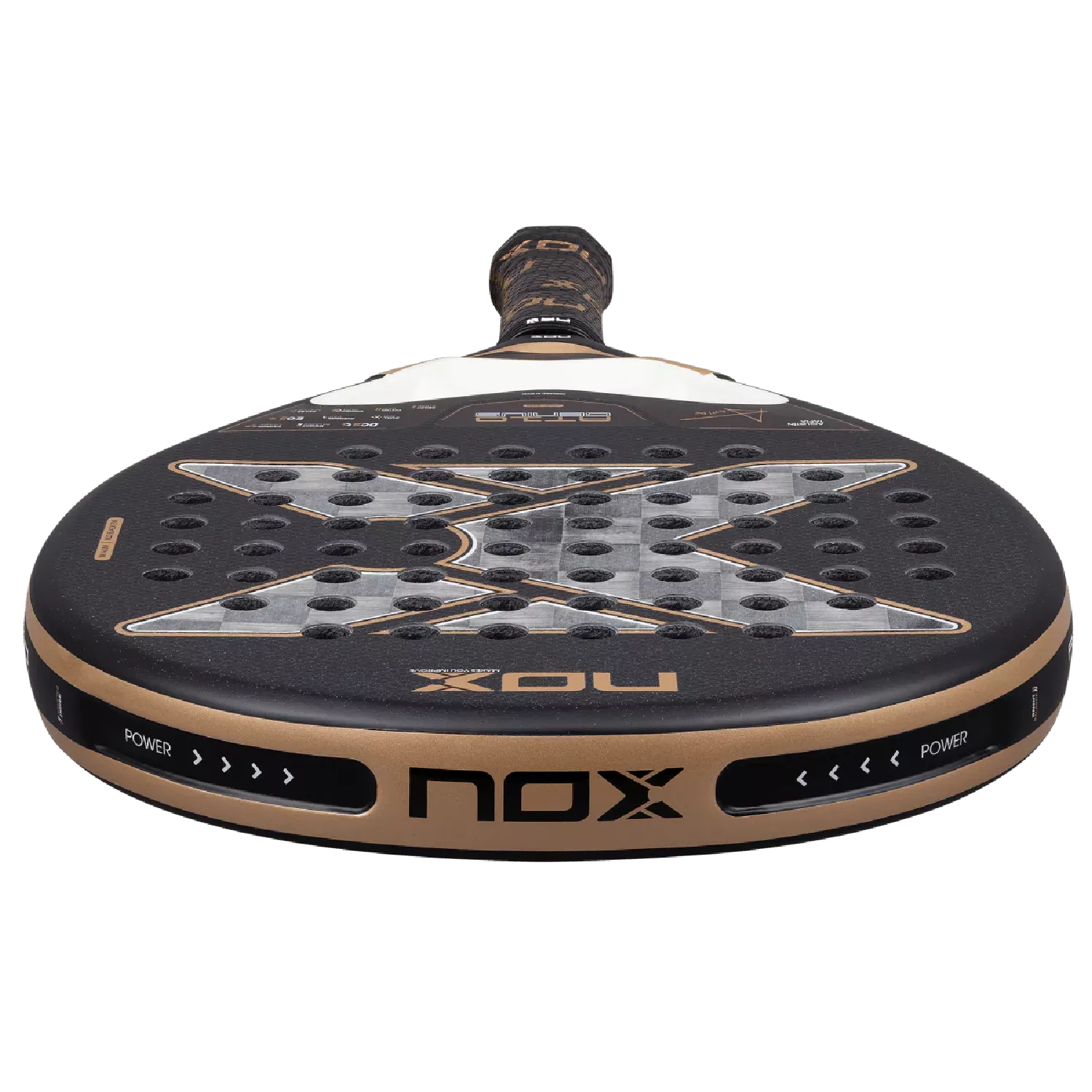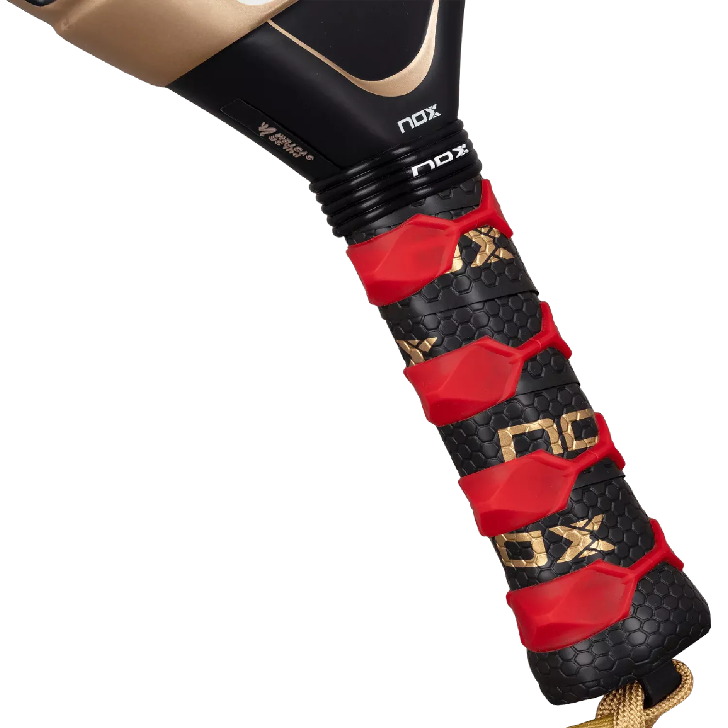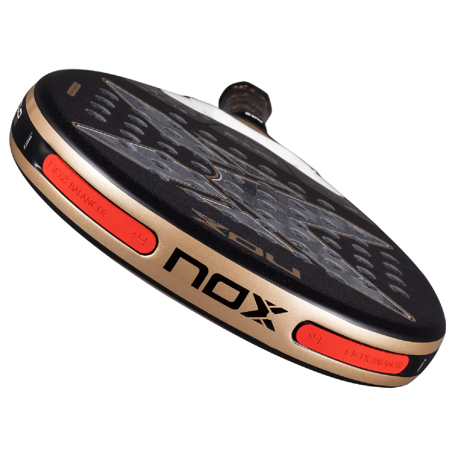 NOX Padel Racket AT10 Luxury Genius 18K Alum 2026 (By Agustin Tapia) sets a new standard in padel racket innovation, evolving the model that propelled Agustín Tapia to the top of the world rankings with a redesigned mould. This year, the racket used by the “Mozart of Catamarca” incorporates the Weight Balance counterweight system, enabling players to customise the racket’s balance according to their playing style for a fully personalised experience.
