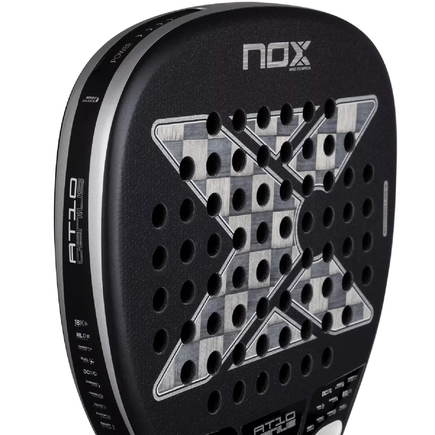 Constructed with 18K aluminised carbon and an MLD Black EVA core, the AT10 Genius Attack 2026 delivers a solid, comfortable feel with consistent performance in any condition — combining power, precision, and style for players who dominate the court.