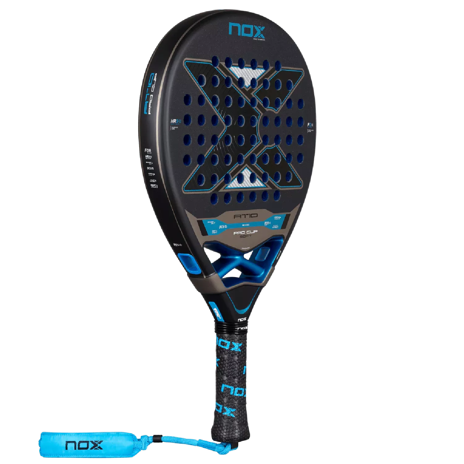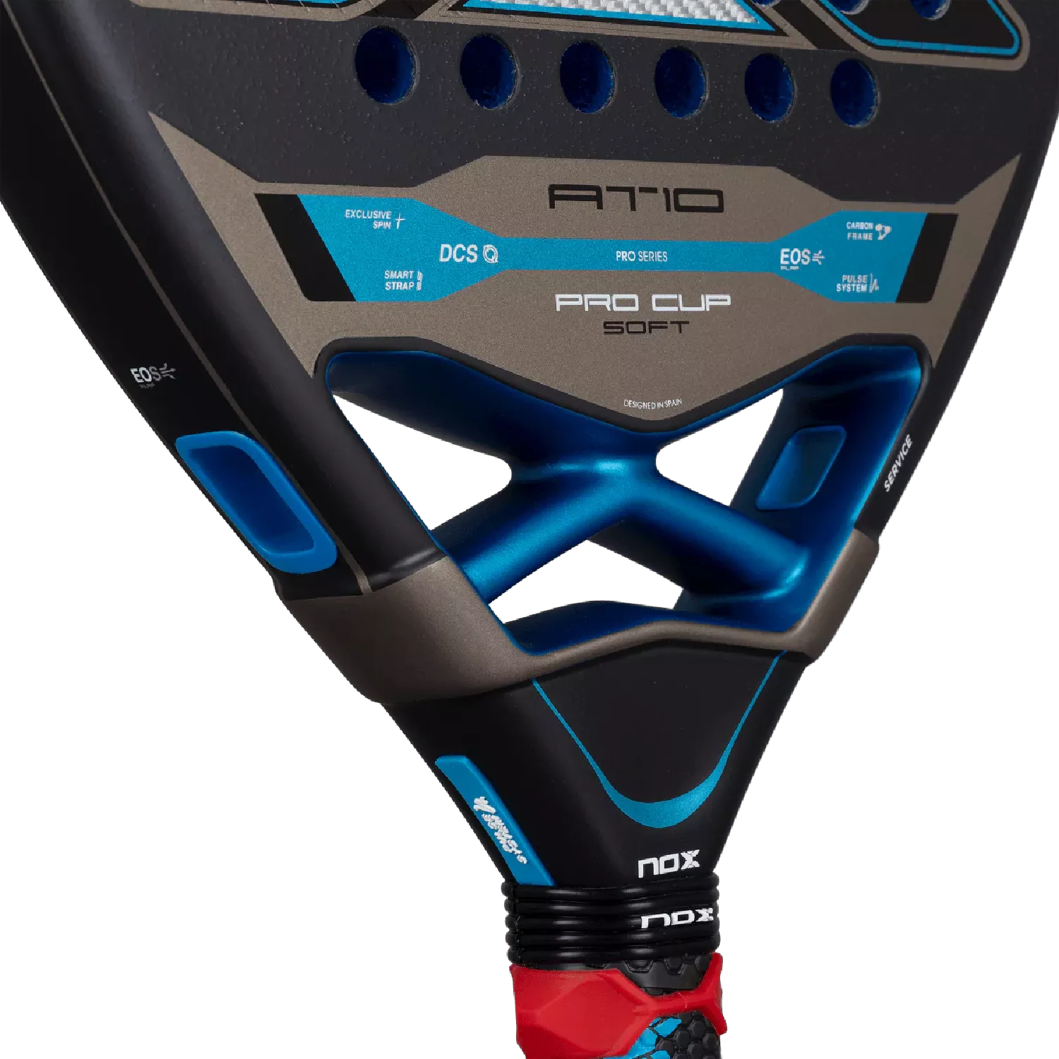 NOX Padel Racket AT10 Pro Cup Soft 2026 (By Agustin Tapia) builds on the design of Agustin Tapia’s 2025 model, integrating advanced technologies to elevate performance and playability. Its EOS Flap system enhances aerodynamics and manoeuvrability, while the Pulse System reduces vibrations to maximise comfort on every shot.