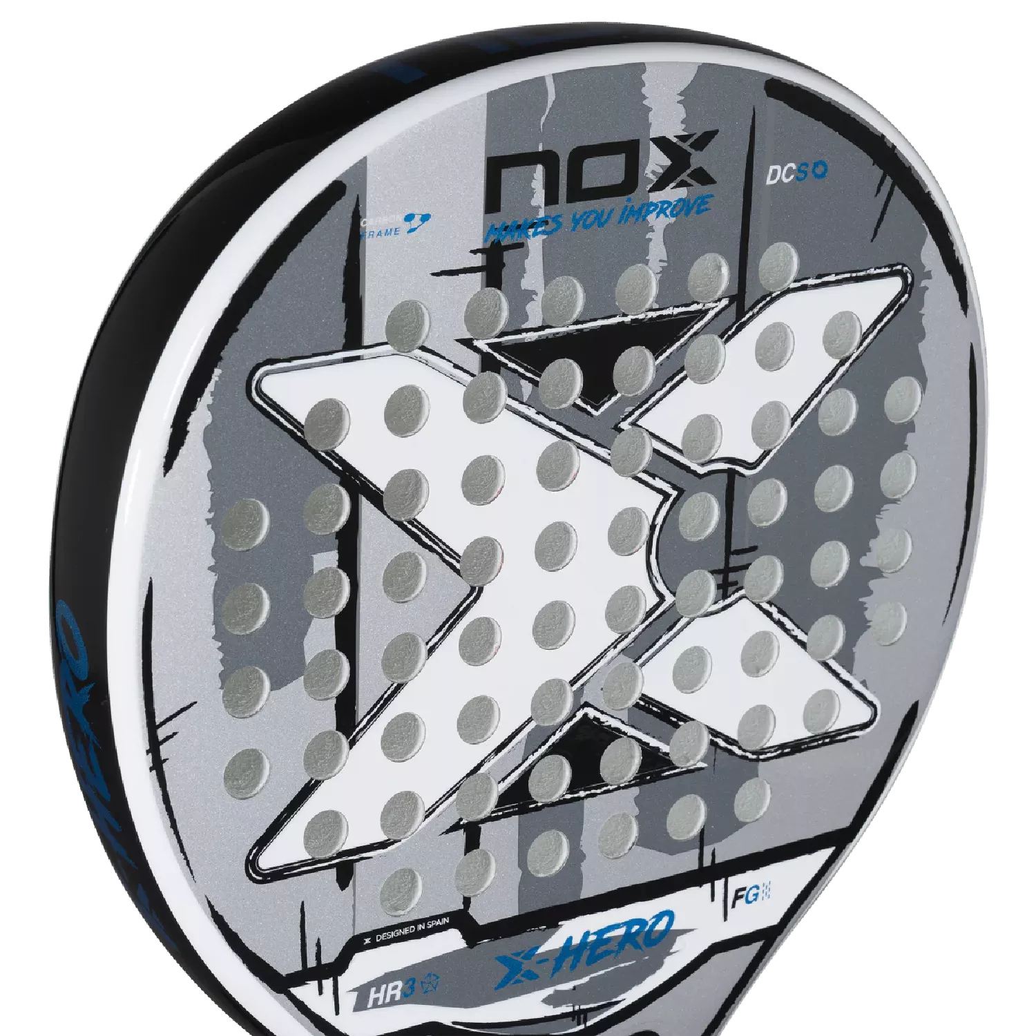 NOX Padel Racket X-Hero White 2026 is the perfect padel racket for beginner and intermediate players seeking the ideal balance of control, comfort, and manoeuvrability to make every match and training session more enjoyable. Its round shape and high-quality materials ensure consistent performance and precision with every shot, delivering a fun and dynamic experience on the court.