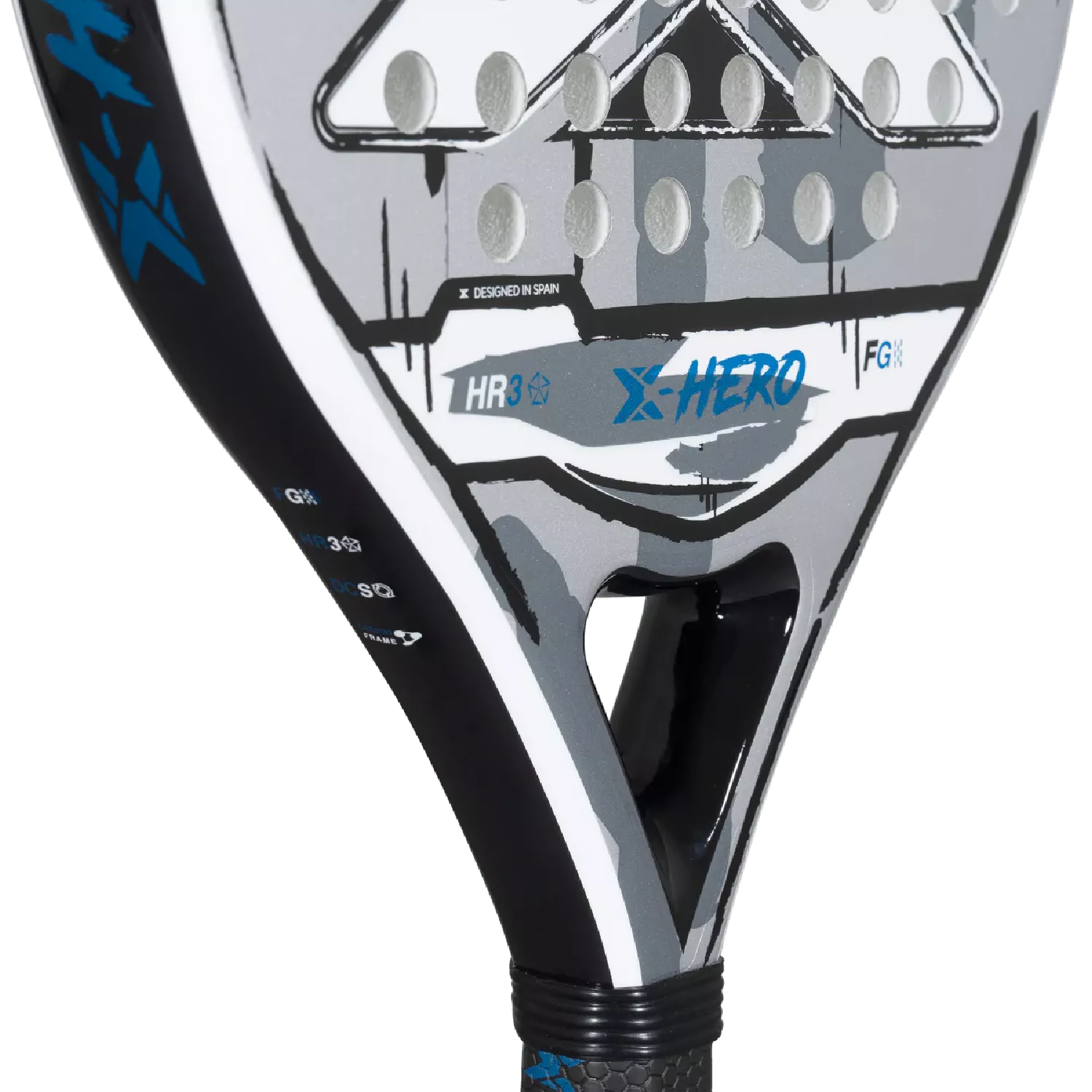 Equipped with advanced technologies from NOX’s higher-end models, the X-Hero features an HR3 rubber core for enhanced power and feel, a carbon frame that provides strength and stability, and 3K fibreglass faces for optimal ball rebound. This combination makes the X-Hero a reliable, comfortable, and well-balanced choice for improving your padel game.