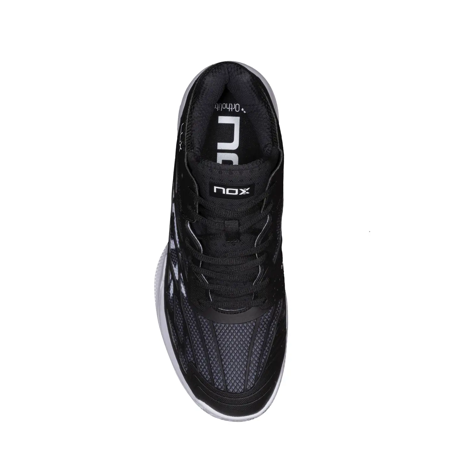 NOX Padel Shoes AT10 LUX Black White are high-end performance footwear designed for padel players who refuse to compromise on style, power, or foot health. Certified by the INESCOP Footwear Technology Center and endorsed by top podiatry specialists, these shoes are meticulously engineered to minimize injury risks while providing maximum comfort and stability during intense matches. The upgraded LUX materials enhance cushioning, durability, and structural support, ensuring the foot remains secure during every turn and explosive movement.
