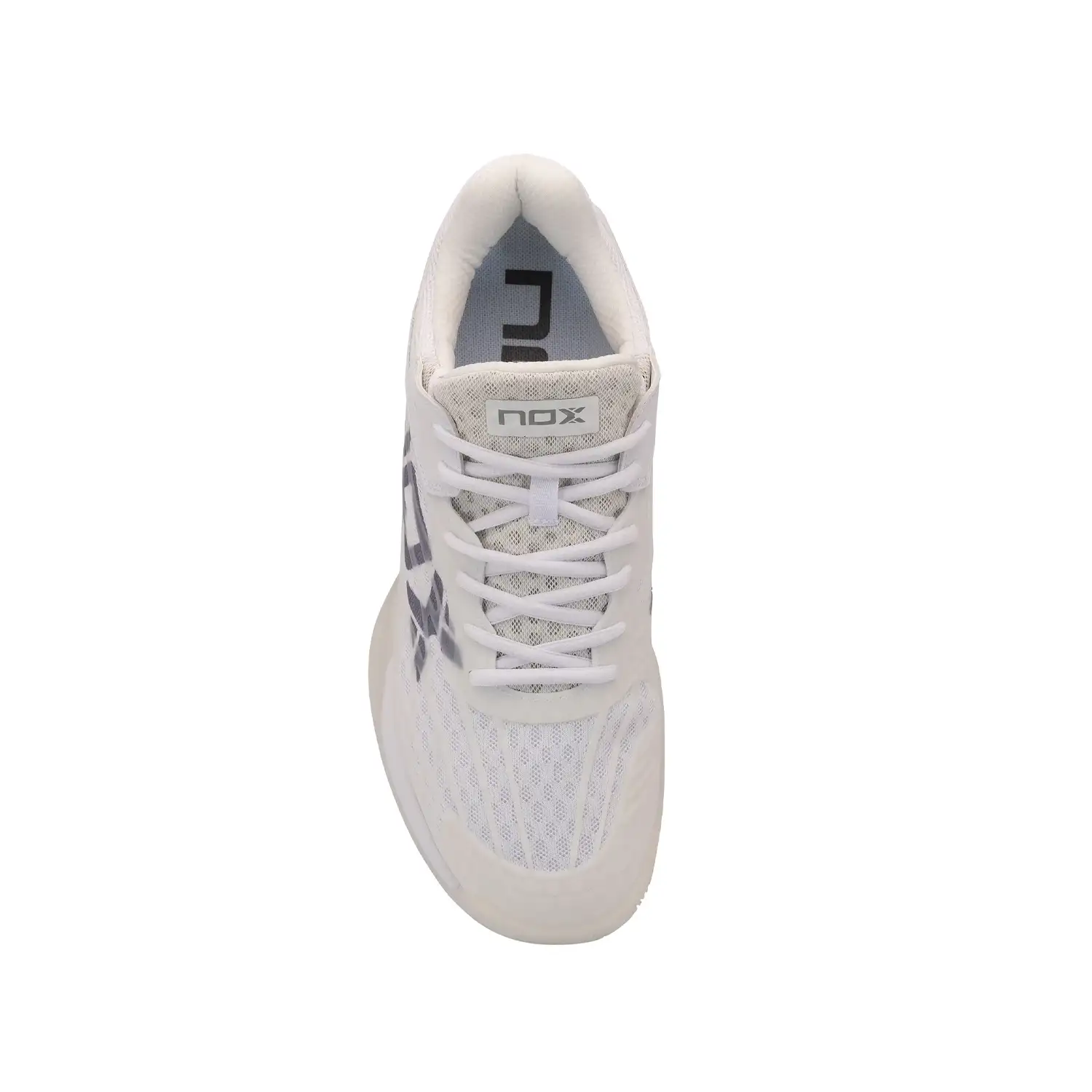 NOX Padel Shoes AT10 LUX Grey White represent the first padel footwear engineered with a focus on player health, clinically endorsed and laboratory certified for superior safety and performance. Designed to reduce the risk of injuries, these shoes incorporate advanced ergonomics and support features tailored for intense paddle matches. Clinically endorsed by Marta Rueda, a renowned podiatrist from the Centro de Estudios del Pie Martín Rueda and advisor to the Centro de Alto Rendimiento Deportivo de Sant Cugat in Spain, the AT10 LUX ensures optimal alignment, cushioning, and stability during every movement on the court.