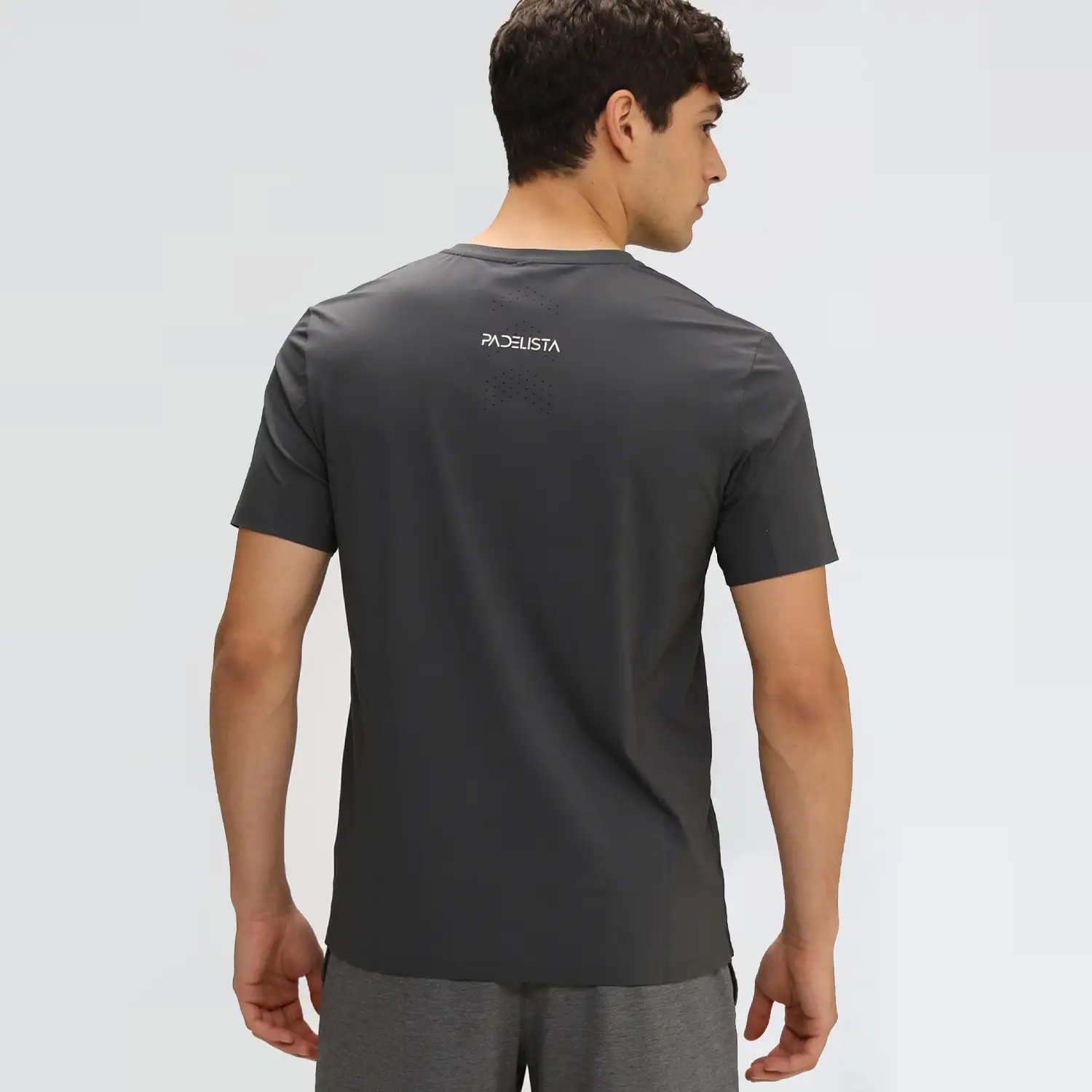 The AeroFlex construction enhances airflow and supports rapid-dry performance, helping regulate body temperature during high-intensity rallies. Its ergonomic athletic fit allows unrestricted mobility for quick directional changes, powerful smashes, and extended court coverage. Finished in a versatile grey tone, this performance-driven padel T-shirt delivers a clean, professional look combined with advanced functionality — built for players who demand consistency and confidence in every match.