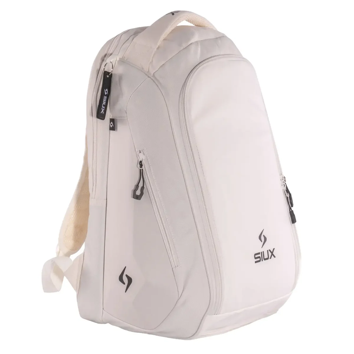 This padel backpack stands out thanks to its intelligent internal organization, including a main compartment for your racket, a padded laptop pocket, and a dedicated ventilated shoe section to keep footwear separate from clean items. Practical side pockets allow quick access to bottles and accessories, while the padded back panel ensures maximum comfort during transport, even on long days at the club or while traveling. Part of the Siux 2026 bag catalog, the Tour White 2026 backpack is a versatile and stylish choice for modern padel players who value comfort, protection, and refined design.