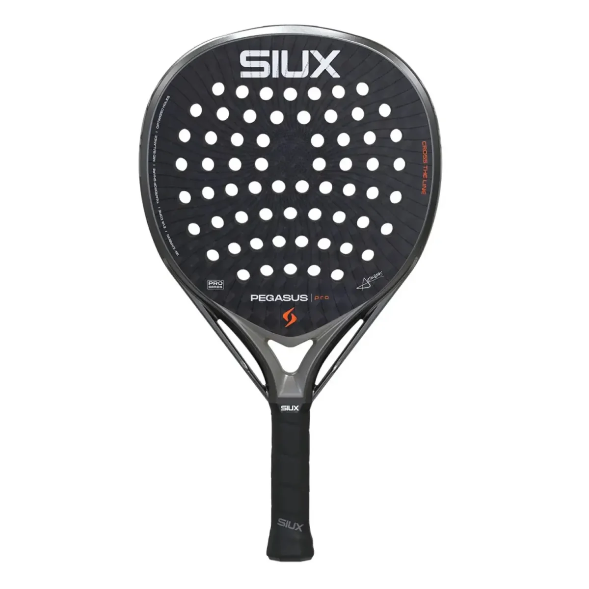 SIUX Padel Racket Pegasus Pro Storm Grey 2026 is a high-performance padel racket designed for advanced players who demand a perfect fusion of power and control. Featuring a teardrop shape and a weight range of 355 to 375 grams, it provides a powerful ball output while maintaining excellent maneuverability. The EVA Hard core delivers a firm, explosive feel with enhanced energy transfer, and the durable 12K carbon face ensures stability and superior precision during intense rallies. Used and endorsed by professional player Alex Chozas, this racket stands out as a premium option for competitive athletes.