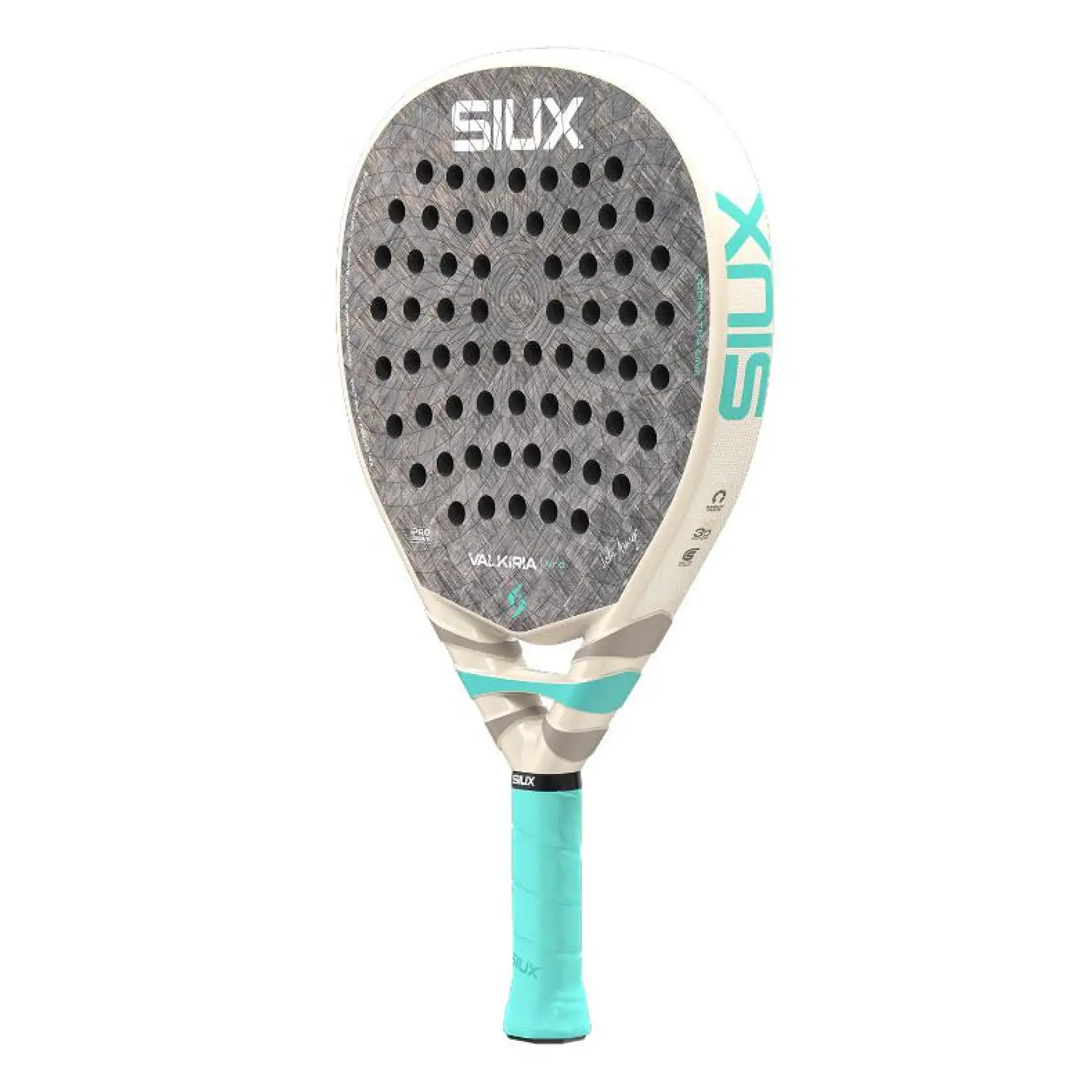 SIUX Padel Racket Valkiria PRO 2026 is crafted for advanced players seeking exceptional control and a highly responsive feel on the court. Featuring a versatile hybrid shape and a lightweight range of 350 to 365 grams, this racket delivers an ideal balance of maneuverability and precision. Its Eva Soft core enhances comfort and shock absorption, while the durable 3K carbon face provides a solid touch and consistent performance. Endorsed by professional player Sofia Araujo, the Valkiria PRO stands out as a top-tier model in the 2026 Siux Valkiria series.