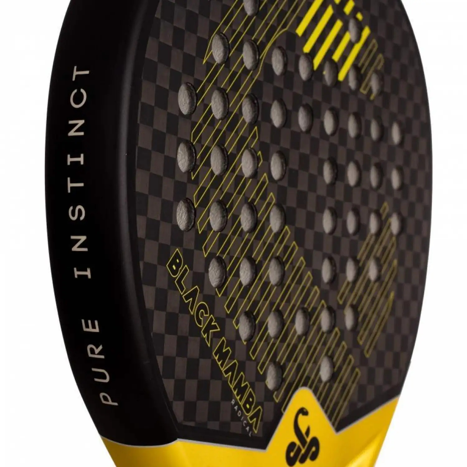 VIBOR-A Padel Racket Black Mamba Radical 12K 2.0 is a high-performance padel racket designed for advanced players seeking exceptional control and precision on the court. Featuring a hybrid shape, this racket combines the benefits of both diamond and round designs, allowing players to execute powerful shots while maintaining accuracy. Weighing between 350-365 grams, it offers a perfect balance of maneuverability and stability. The Eva Soft core ensures optimal shock absorption and comfort during play, reducing fatigue and enhancing shot consistency. Its 12K carbon face delivers superior strength and durability, providing a responsive surface that translates every swing into maximum impact.