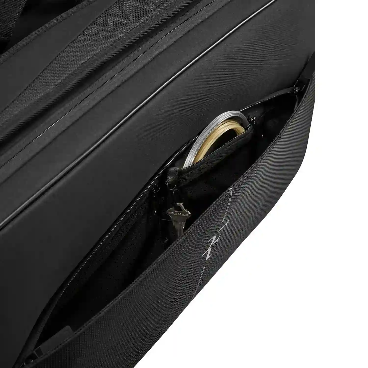 WILSON Tennis Bag RF Tournament 9 Pack Black is a premium, tour-level tennis bag inspired by the elegance of the Swiss Alps and designed as part of Roger Federer’s iconic RF collection. Crafted from 100% durable polyester with refined pinstripe detailing, this professional tennis racket bag features the signature RF logo and premium zipper pulls for a sophisticated finish. With capacity for up to 9 tennis rackets, it is ideal for competitive players seeking a high-capacity tennis bag with elite-level protection and organization.